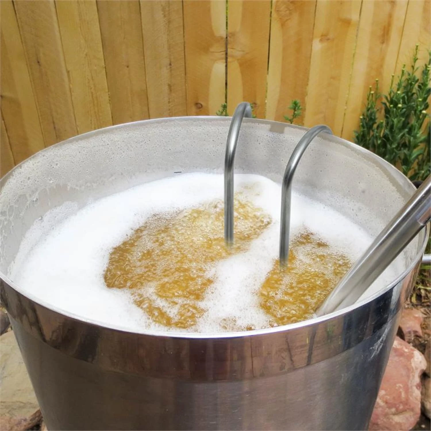 - Rohr-Enden zu Haken geformt zum Einhängen am Kesselrand