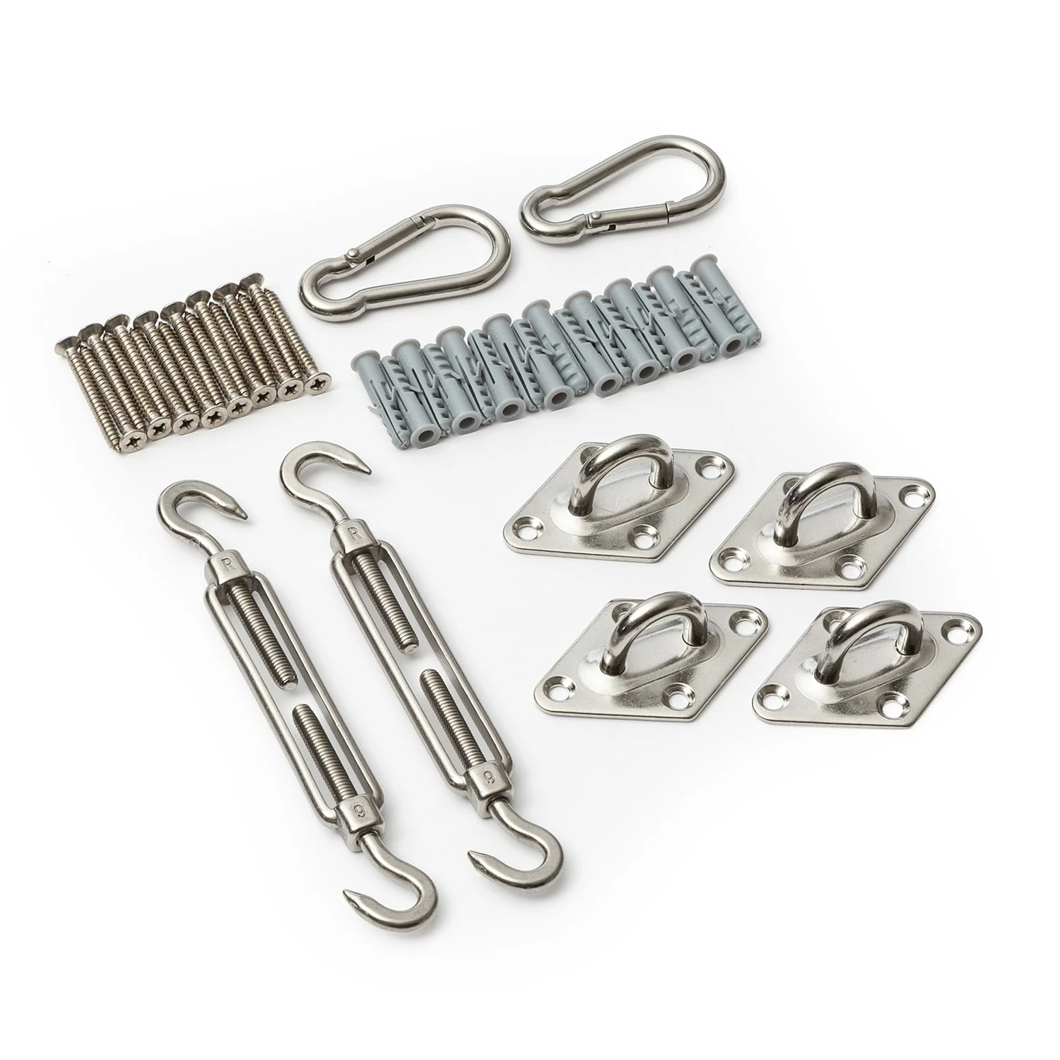 Mit dem Bambuswald Befestigungskit für unsere Sonnensegel hast du die volle Flexibilität bei der Anbringung. Das 24-teilige Set ist aus rostfreiem Edelstahl gefertigt und ideal für die Montage an Holzpfeilern, -wänden oder -decken. Das Fixierungsset ermöglicht es dir deinen Sonnenschutz optimal zu spannen und windstabil zu montieren.