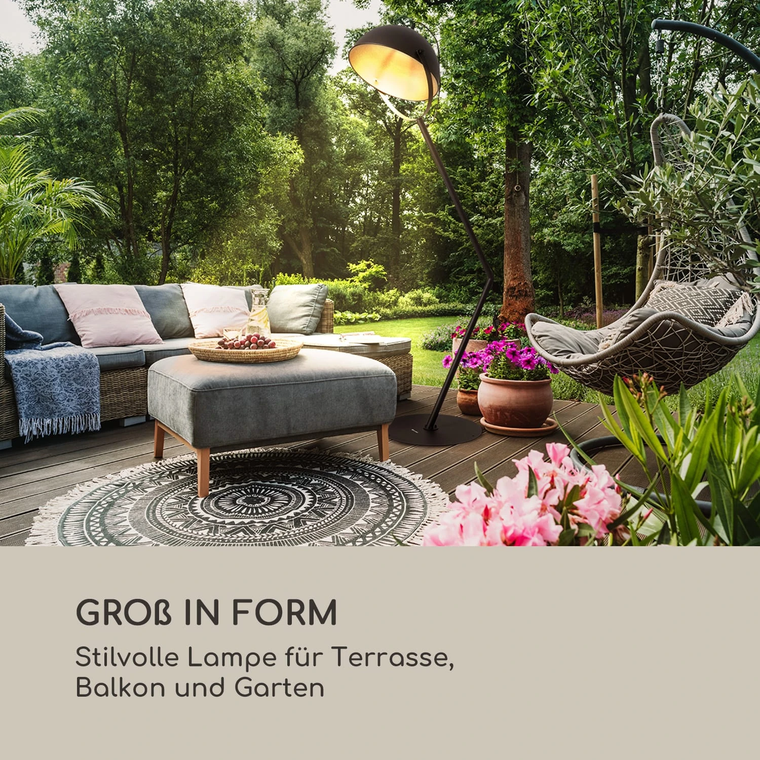 Die besonders große und stilvolle blumfeldt Big Benny Lampe schafft im Garten, auf dem Balkon oder der Terrasse eine heimelige Atmosphäre. Zusätzlich bereichert sie deinen Outdoor-Bereich um ein einzigartiges Einrichtungsstück.