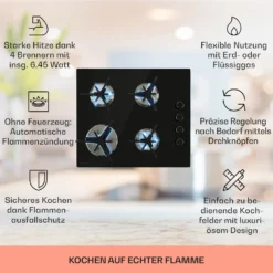Trifecta 4 Gaskochfeld 4-flammig Triangle-Brenner Glaskeramik