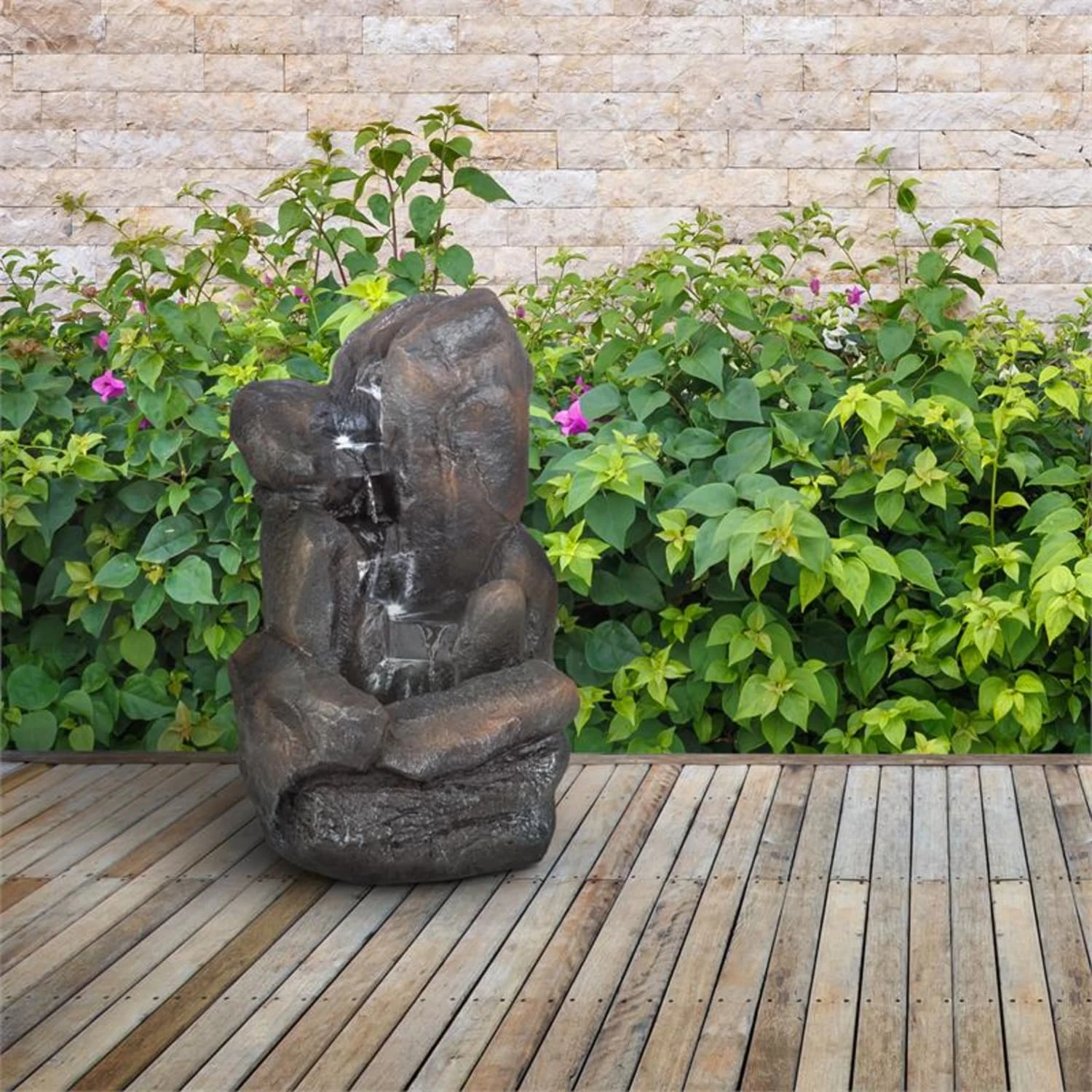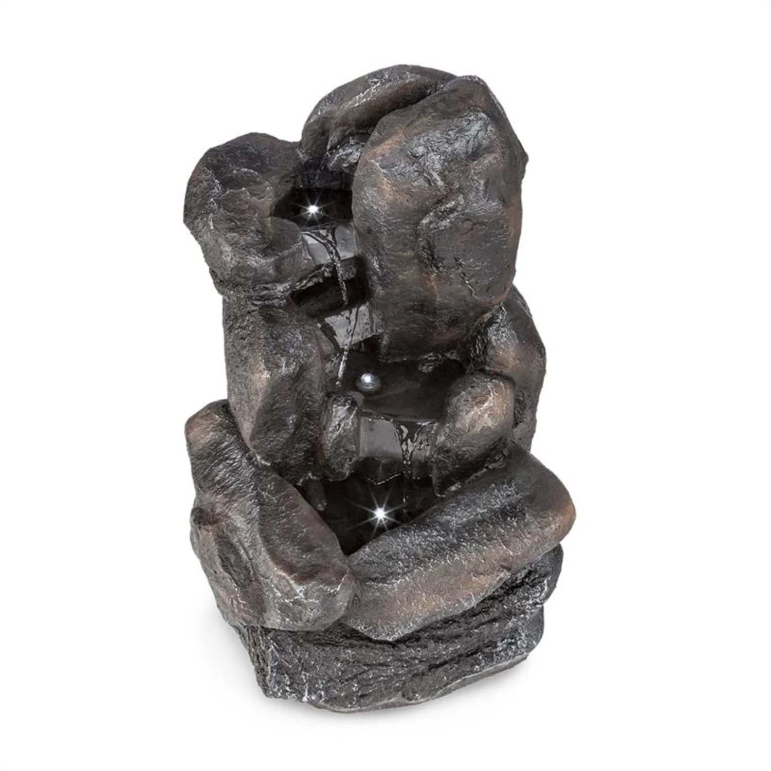 Felsquell Solar-Kaskadenbrunnen Akkubetrieb 2 KW Solarpanel 3 LEDs