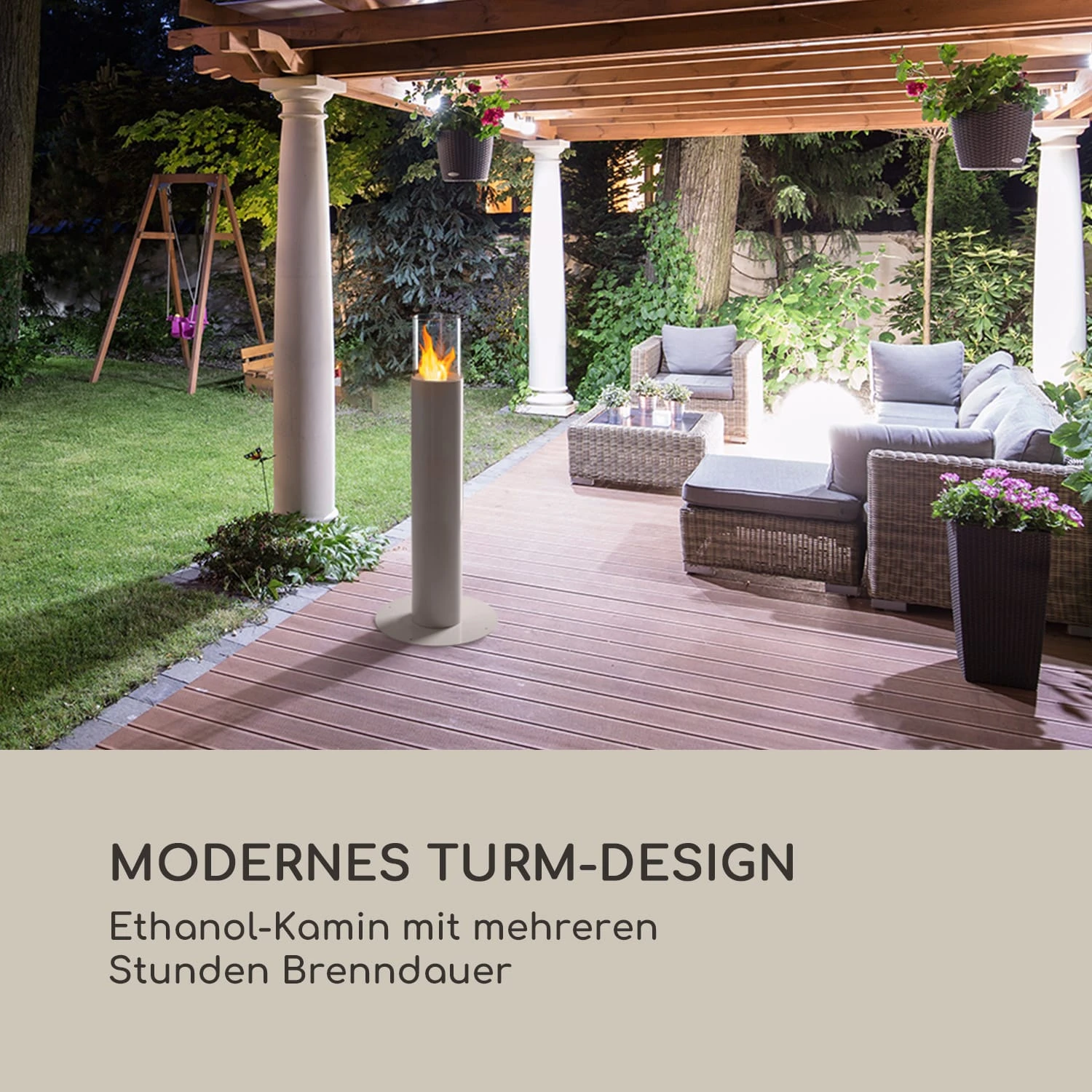 Mit dem blumfeldt Fiamme Pila Ethanol-Kamin zieht eine wunderschöne Feuerstelle in dein zu Hause ein. Der Fiamme Pila wird komplett mit Bio-Ethanol aus nachwachsenden Rohstoffen betrieben und hinterlässt beim Verbrennen weder Ruß noch unangenehme Gerüche. Der aus Edelstahl gefertigter Brenner fasst 0,5 Liter und sorgt für ein bis zu 5 Stunden andauerndes Flammenspiel. Sein modernes Turm-Design macht ihn auch ohne Feuer zum Blickfang. Natürlich ist der Fiamme Pila auch im Garten oder auf der Terrasse ein Highlight und verbreitet ein gemütliches Ambiente. Das beiliegende Regencover schützt ihn bei Nichtgebrauch vor Wind und Wetter. Zum sicheren Löschen der Flamme ist eine praktische Löschplatte im Lieferumfang enthalten.