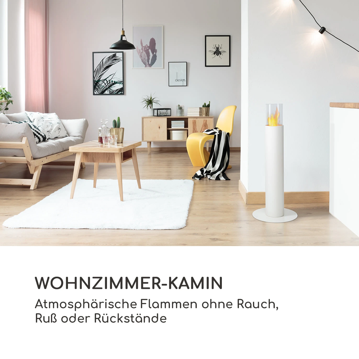 Flammen hinter Glas: der blumfeldt Fiamme Pila Ethanol-Kamin.