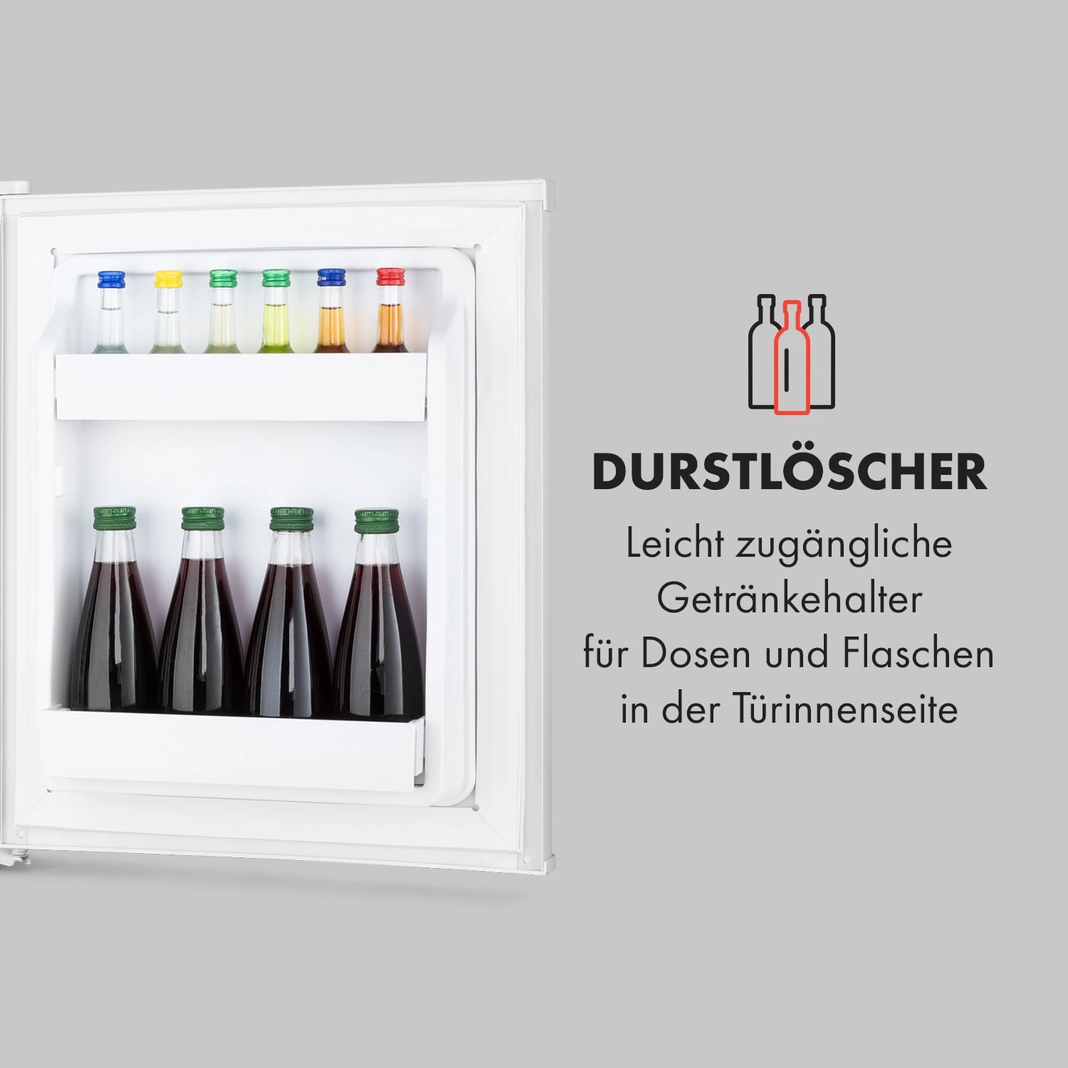 Der Klarstein Happy Hour Minikühlschrank ist kompakt und nahezu unhörbar, denn das Kühlsystem ist auf dem neuesten Stand der Technik. Spielend beherbergt er Getränke oder Snacks und bringt sie dabei auf angenehm erfrischende Temperaturen. Sein großzügiger Innenraum nimmt alles gelassen in sich auf. Die Klarstein Happy Hour Minibar kann problemlos dort ihre Kühltätigkeiten verrichten, wo oft nur wenig Raum zur Verfügung steht: in Hotelzimmern, der Gartenlaube, Kinder- oder Jugendzimmern oder direkt im heimischen Partykeller. Über einen Drehregler an der Rückseite lässt sich die gewünschte Kühltemperatur zwischen 5 und 15 °C wählen.