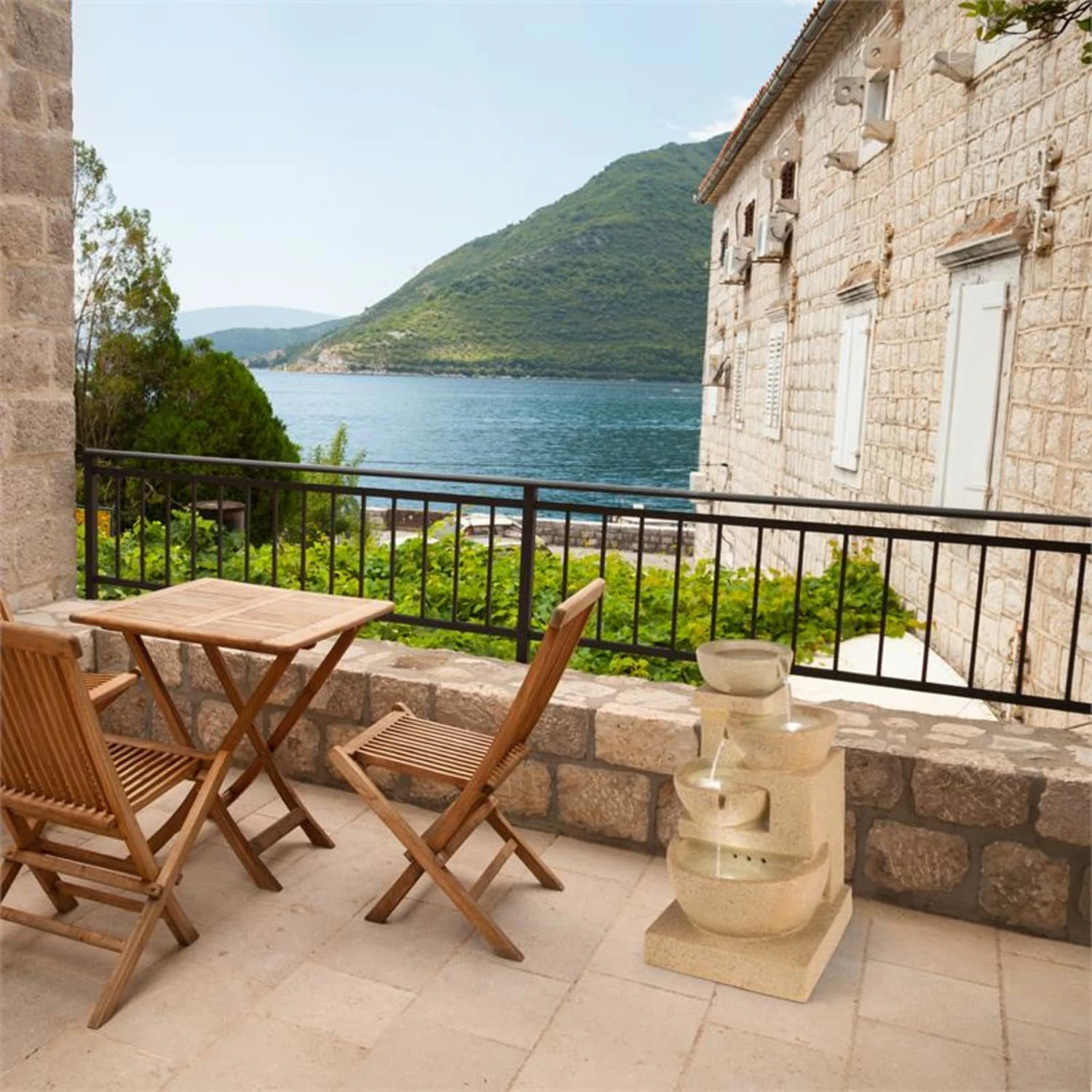 Korinth Zierbrunnen Gartenbrunnen 3W Solar LED Sandsteinoptik