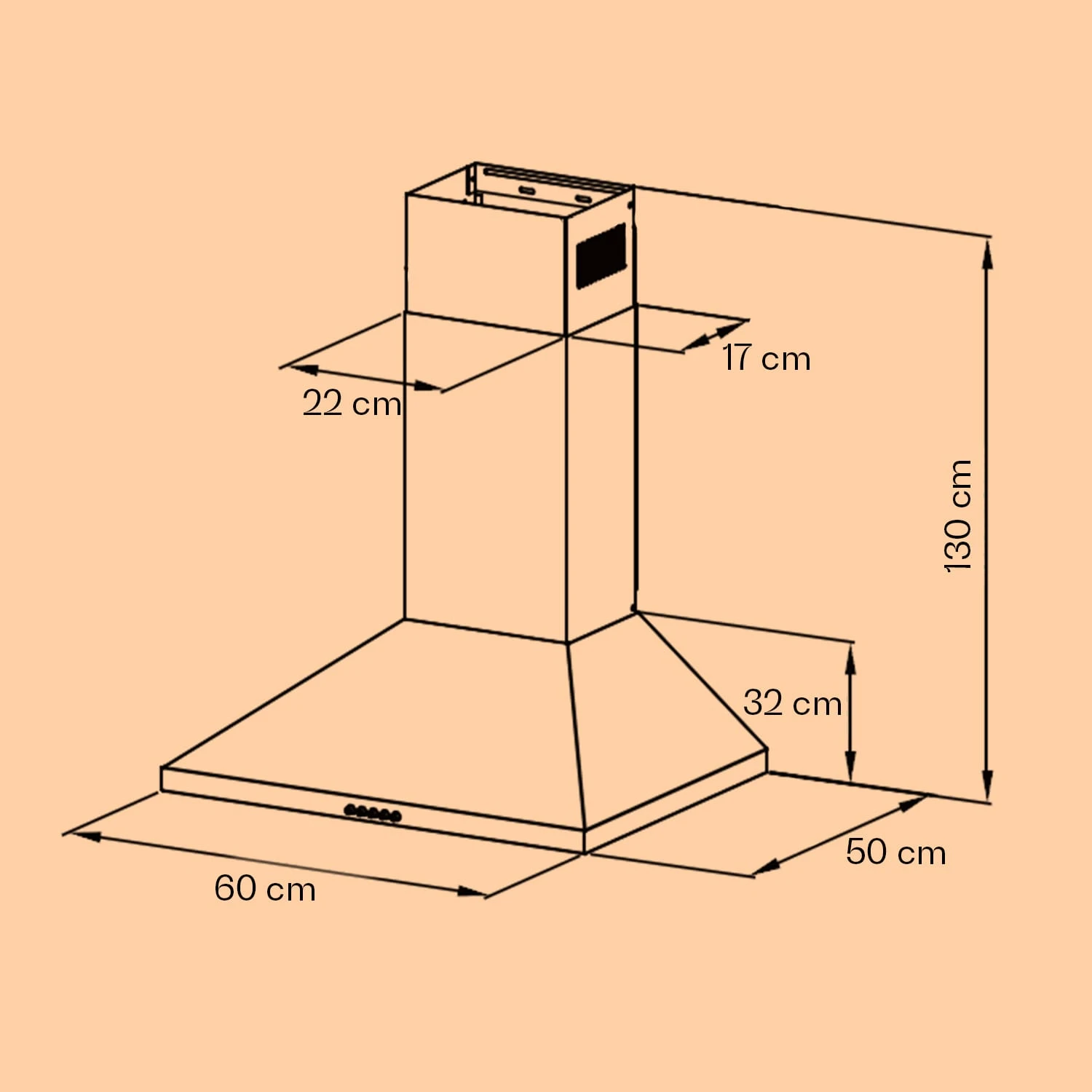 - Maße (Haube ohne Kamin): ca. 60 x 32 x 50 cm (BxHxT)