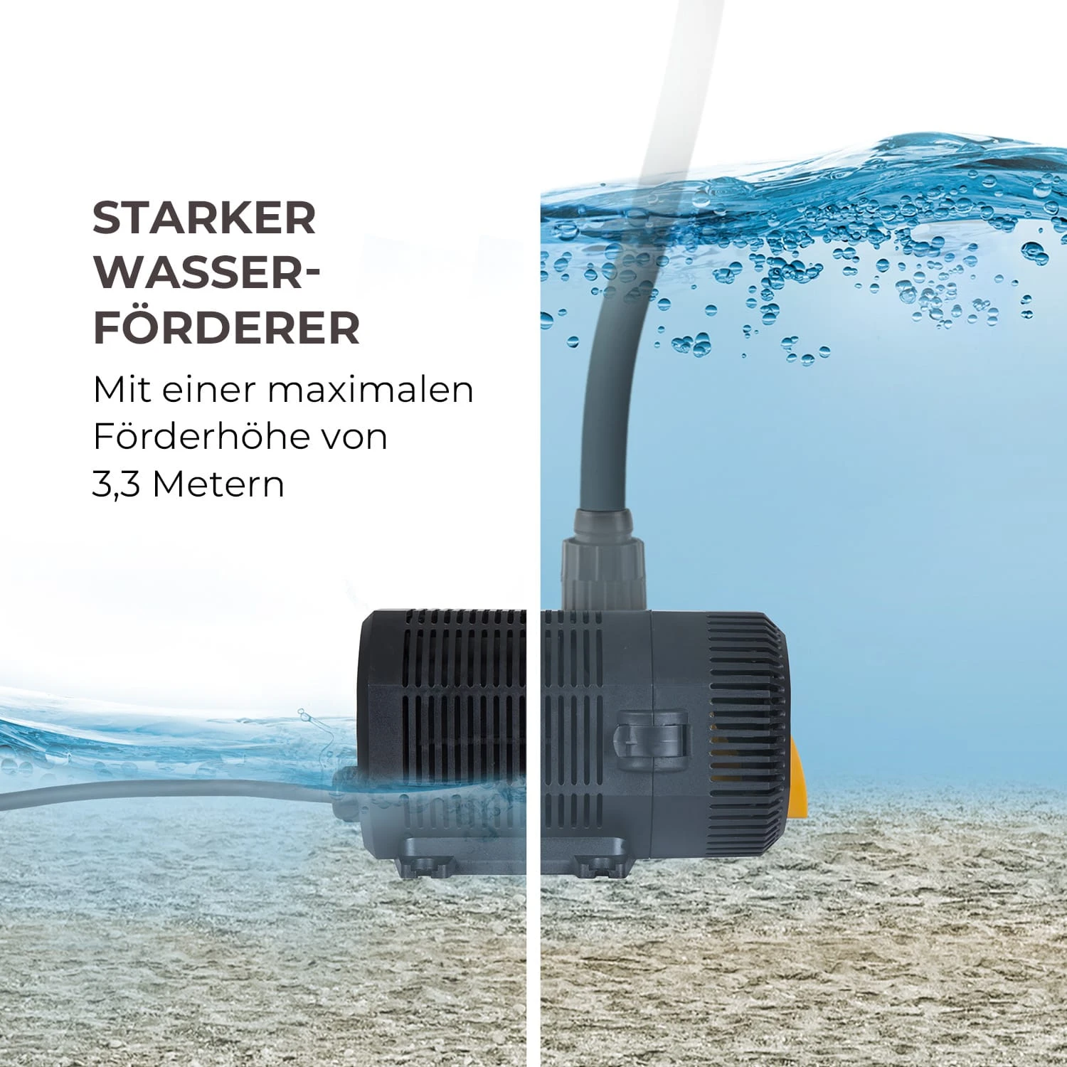 - Maximale Förderhöhe: 3,3 m