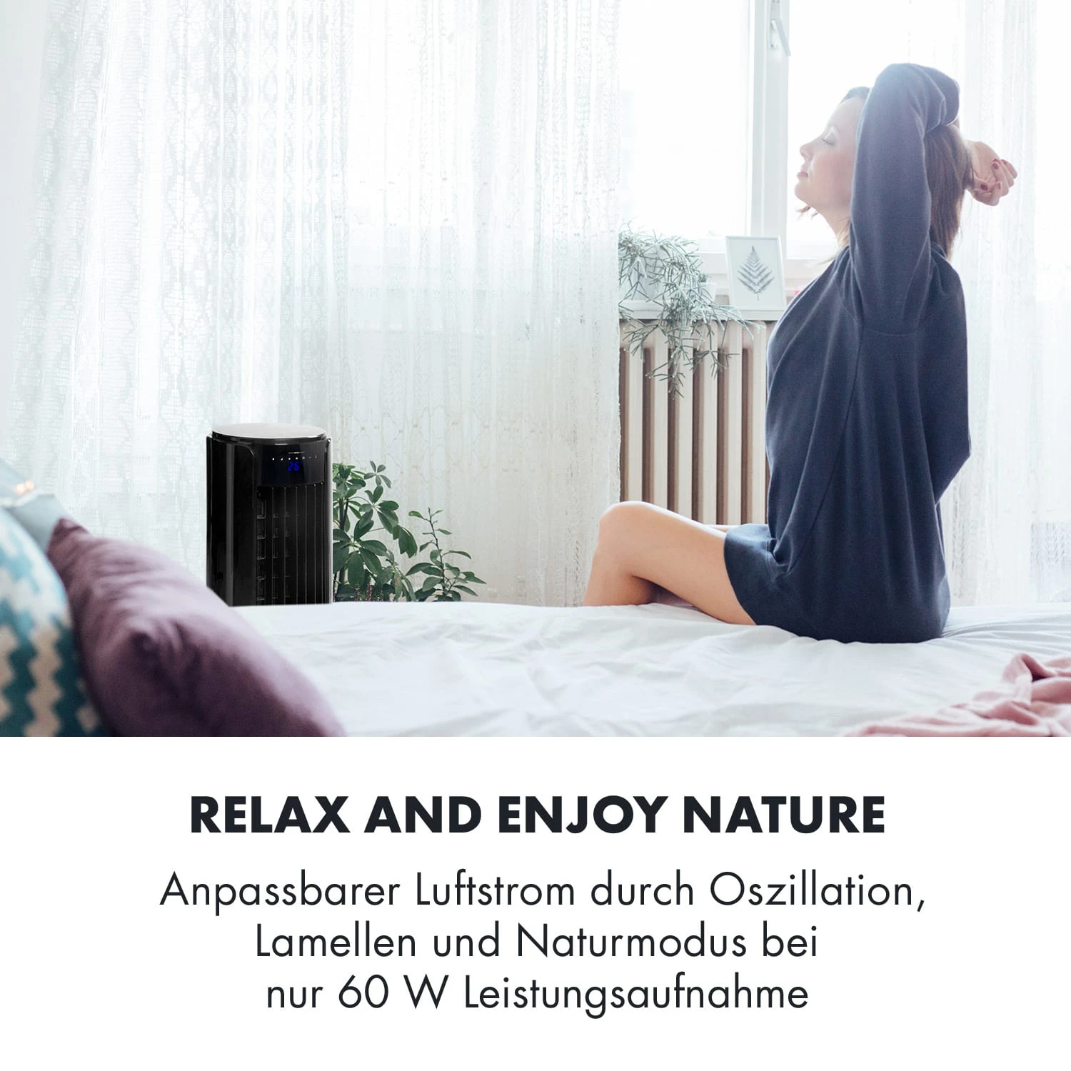 - Bitte beachte, dass es sich bei dem Gerät nicht um eine Klimaanlage handelt: Die Luftkühlung wird durch die Verdunstung von Wasser erzielt