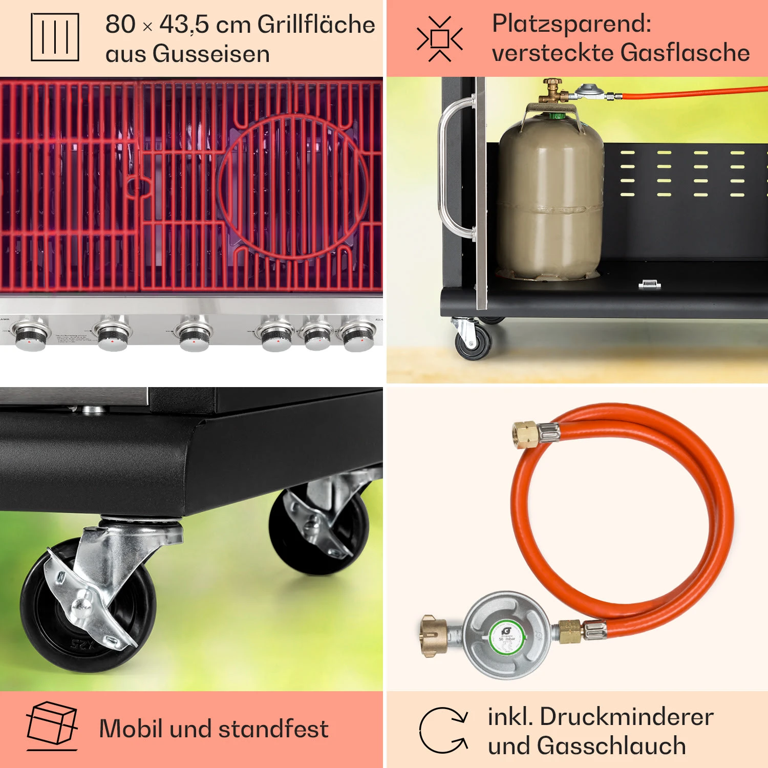 Tomahawk Gasgrill 5×3,6 KW + 2,7 KW Brenner 80×43,5 Cm Grill Edelstahl