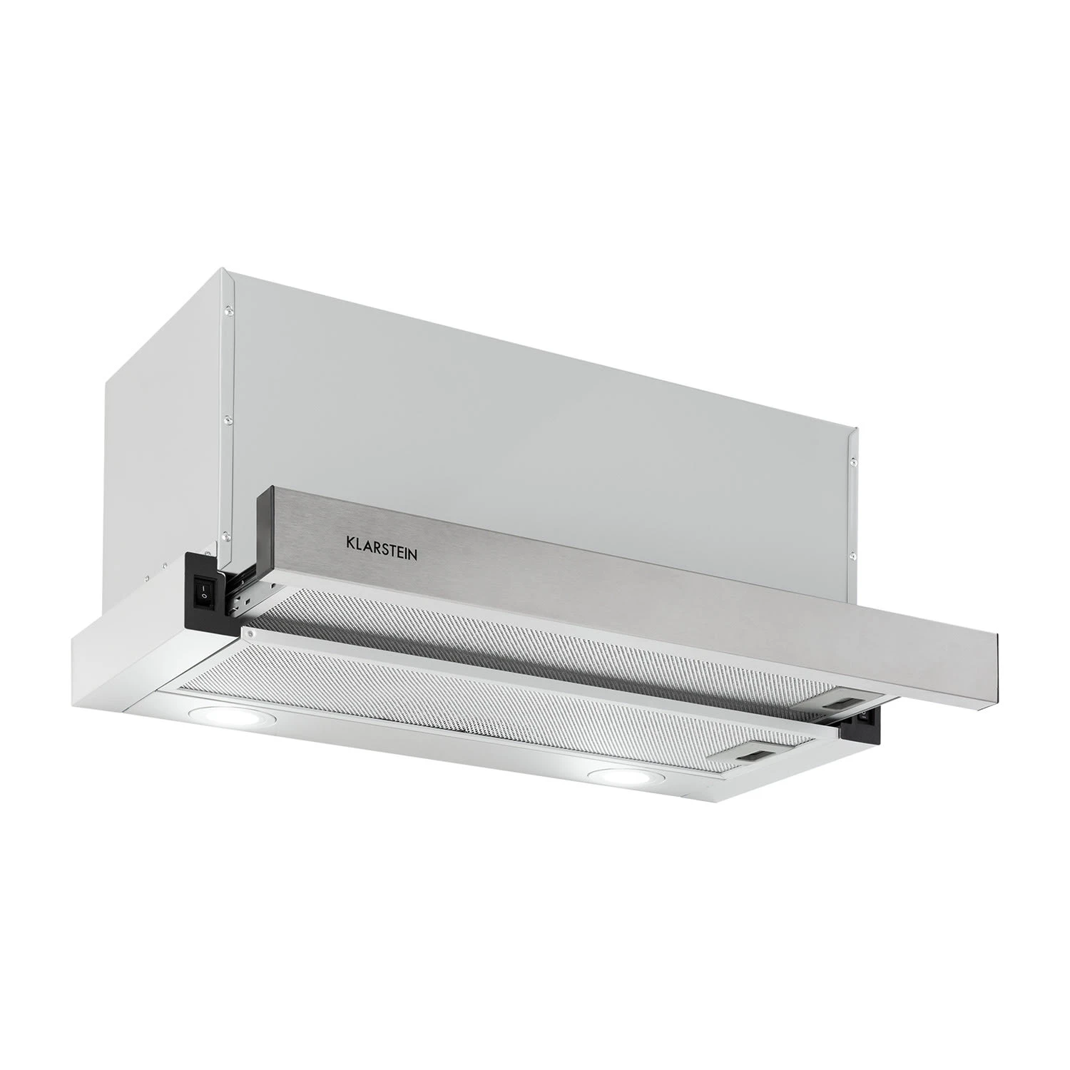 Besonderen Reiz erlangt die Klarstein Viola Dunstabzugshaube durch ihre Teleskop-Funktion: Einfach die Haube zum Einsatz ausziehen und nach dem Betrieb wieder unsichtbar in ihr Unterbau-Versteck zurückschieben. Die zwei Anbringungsmöglichkeiten lassen dich flexible entscheiden, wo du deinen neuen Küchen-Helfer befestigen willst: Sie kann einfach an der Wand über dem Kochfeld montiert oder unter deinem Hängeschrank angebracht werden. Mit den zwei Kipp-Schaltern lassen sich Licht und Luft-Abzug super einfach steuern. Die schicke Edelstahl-Verkleidung ist langlebig und leicht zu Reinigen. Der eingebaute Fett-Filter lässt sich leicht ausbauen und ist einfach mit Wasser und etwas Spülmittel zu reinigen.