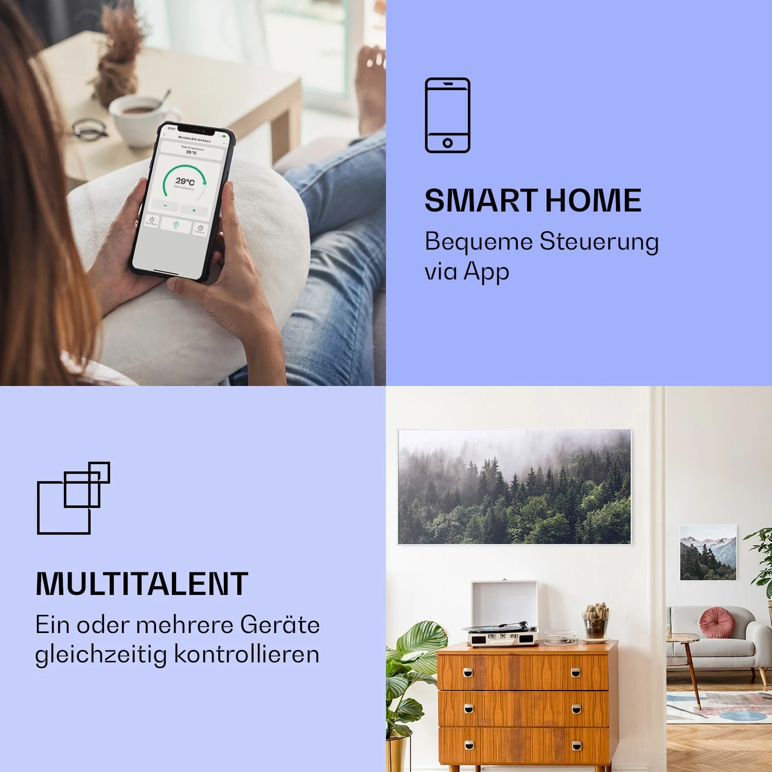 Wonderwall Air Art Smart Infrarotheizung Wald 120x60cm 700W